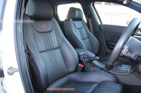 シートは、「アルファ・ロメオ」ロゴの刺繍を施した、