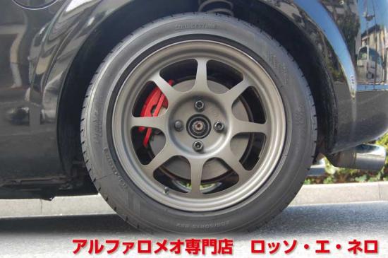 ブラックのボディカラーに、ガンメタの15インチアルミ